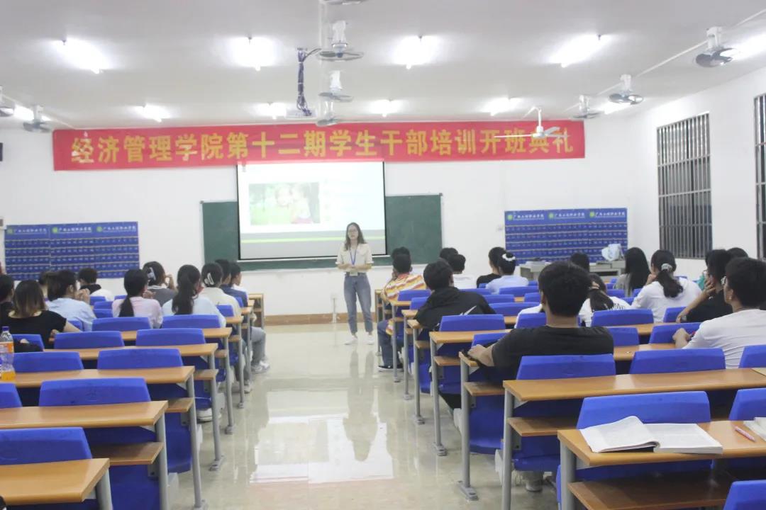 學(xué)校校長助理黃秋霞,經(jīng)濟(jì)管理學(xué)院黨支部書記、副院長覃清香,經(jīng)濟(jì)管理學(xué)院辦公室主任雷紅、分團(tuán)委書記李東英及輔導(dǎo)員、專職老師代表出席開班儀式,經(jīng)濟(jì)管理學(xué)院2021級全體學(xué)生干部參加培訓(xùn)。