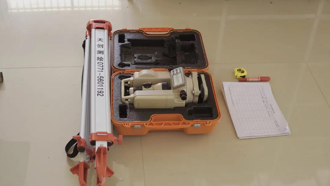 土木工程學(xué)院的同學(xué)架著測(cè)量?jī)x
