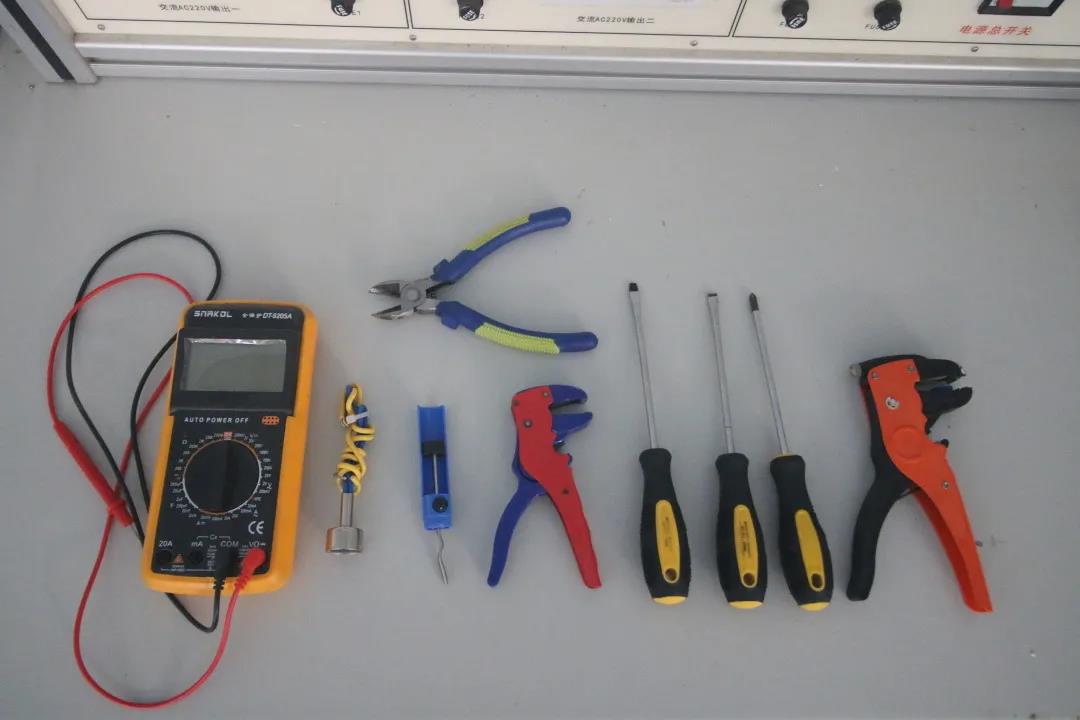 萬用表、萬用筆、螺絲刀、剝線鉗、尖嘴鉗、電工工具包、單芯鋁線、電工絕緣膠……