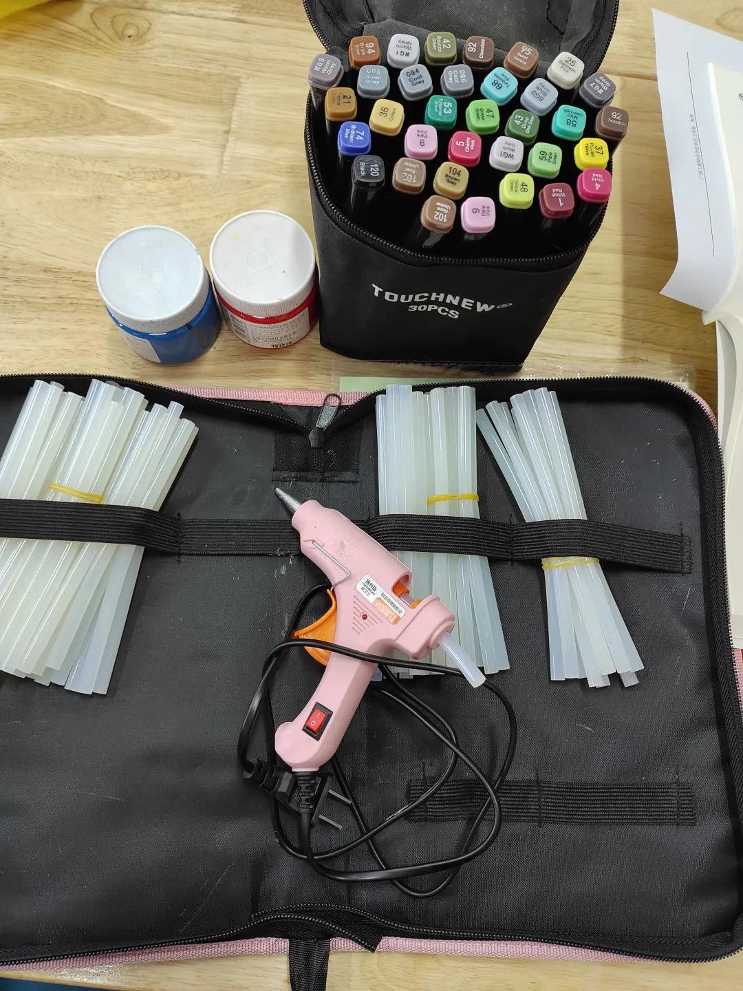水彩筆、卡紙、超輕粘土、熱熔膠、
