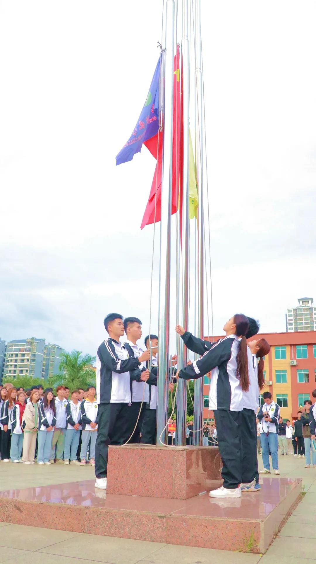 學(xué)校黨委委員、副校長(zhǎng)彭高彬,副校長(zhǎng)吳先夏、黃德偉,校長(zhǎng)助理黃秋霞出席升旗儀式。在校師生參加升旗儀式。儀式由經(jīng)濟(jì)管理學(xué)院黨支部書記、副院長(zhǎng)覃清香主持。