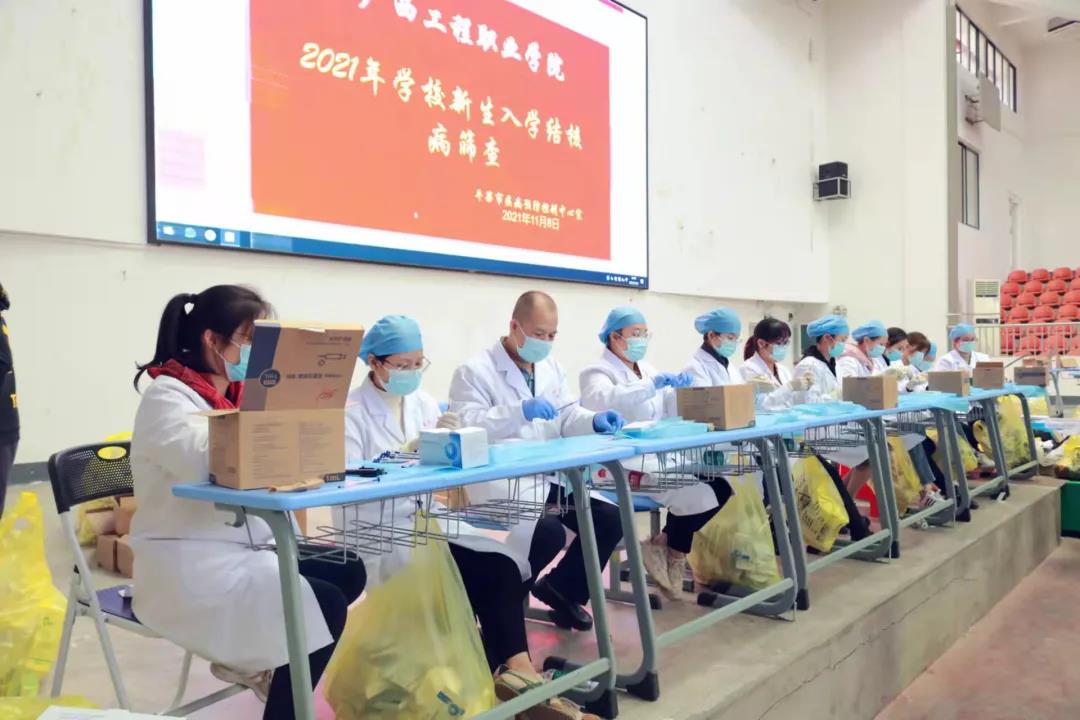 在學(xué)校教務(wù)處、學(xué)生工作處和各二級(jí)學(xué)院的大力支持和配合下,平果市人民醫(yī)院在我校體育館為2021級(jí)新生及教職工進(jìn)行結(jié)核病篩查工作。