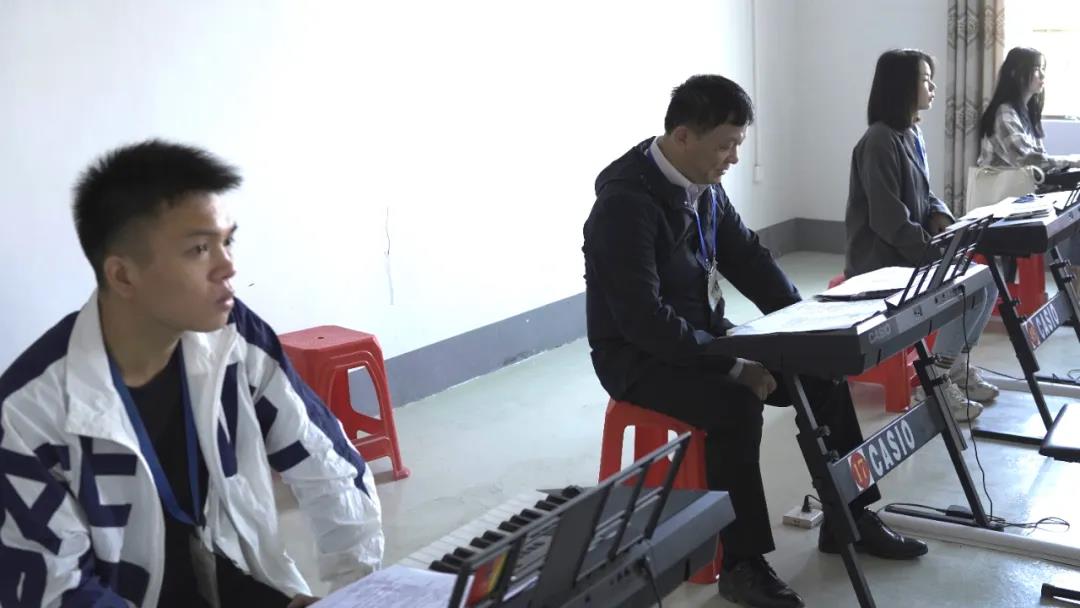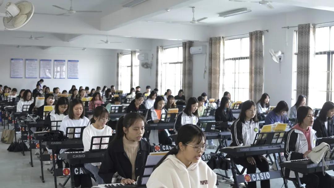 學前教育專業(yè)學生在琴房實訓室進行彈唱練習