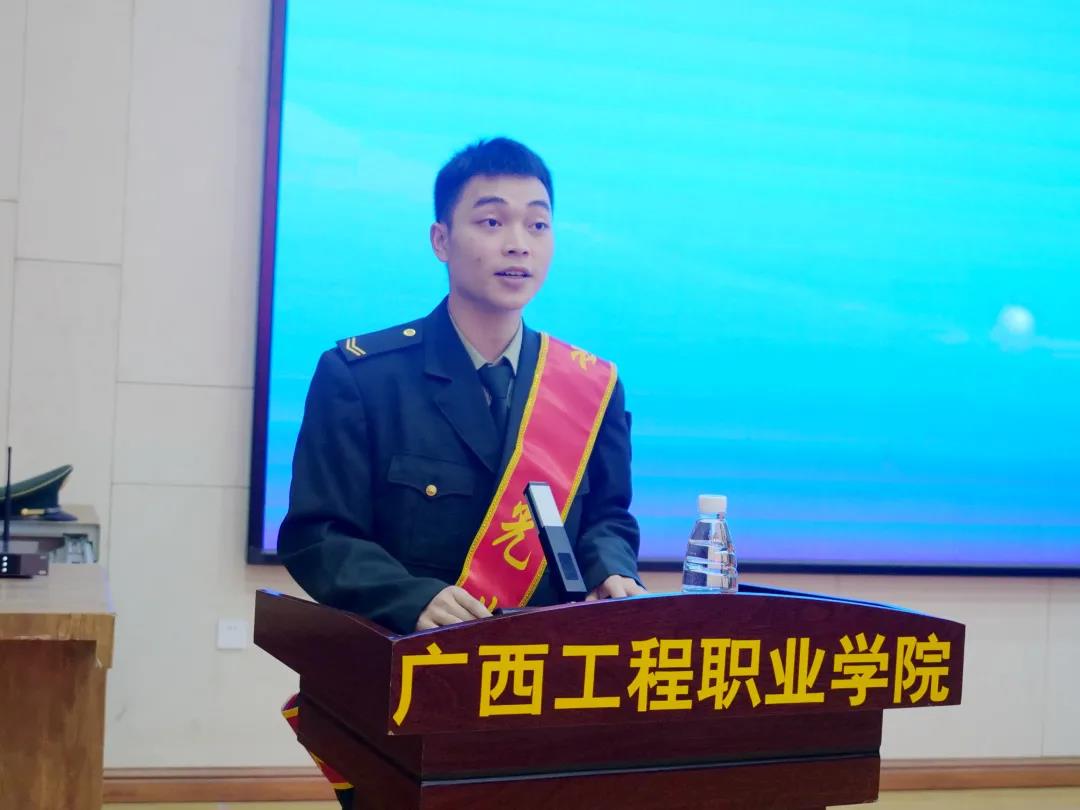 11月11日下午,廣西工程職業(yè)學(xué)院在圖文信息大樓報告廳舉行2021年度光榮退役復(fù)學(xué)入學(xué)大學(xué)生歡迎儀式。學(xué)校副校長黃德偉副教授,校長助理黃秋霞及部分二級學(xué)院負責(zé)人出席儀式,2021年度退役復(fù)學(xué)入學(xué)大學(xué)生以及軍事協(xié)會學(xué)生代表參加了會議。保衛(wèi)處副處長、征兵工作站負責(zé)人李捷主持會議。