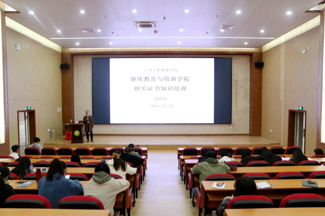 2021年11月23日下午,廣西工程職業(yè)學(xué)院2021年師資培訓(xùn)工程第三期培訓(xùn)在圖文信息大樓報告廳舉行,繼續(xù)教育與培訓(xùn)學(xué)院科長陸源波作專題培訓(xùn),學(xué)校學(xué)生科長及輔導(dǎo)員參加培訓(xùn)。