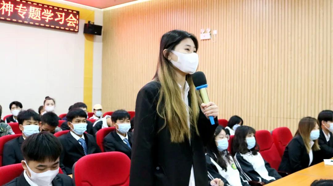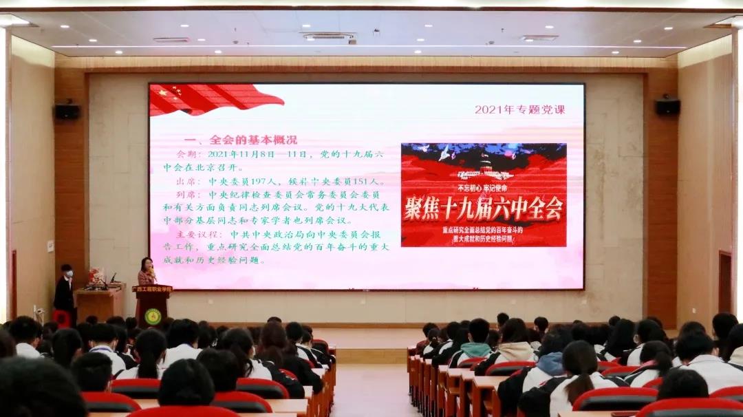 會上,黃秋霞助理主要從六中全會的基本概況、黨的百年奮斗的四個偉大成就、新時代馬克思主義中國化的偉大飛躍、黨的百年奮斗十大歷史經(jīng)驗、總結(jié)黨的百年奮斗重大成就和歷史經(jīng)驗的重大意義、黨的十八大以來十三方面的歷史性成就、兩個確立的決定性意義以及以史為鑒開創(chuàng)未來的重要要求等方面,對黨的十九屆六中全會精神進行了全面解讀和闡釋。宏大的歷史畫卷和生動的講解,讓同學們深受觸動和啟發(fā)。