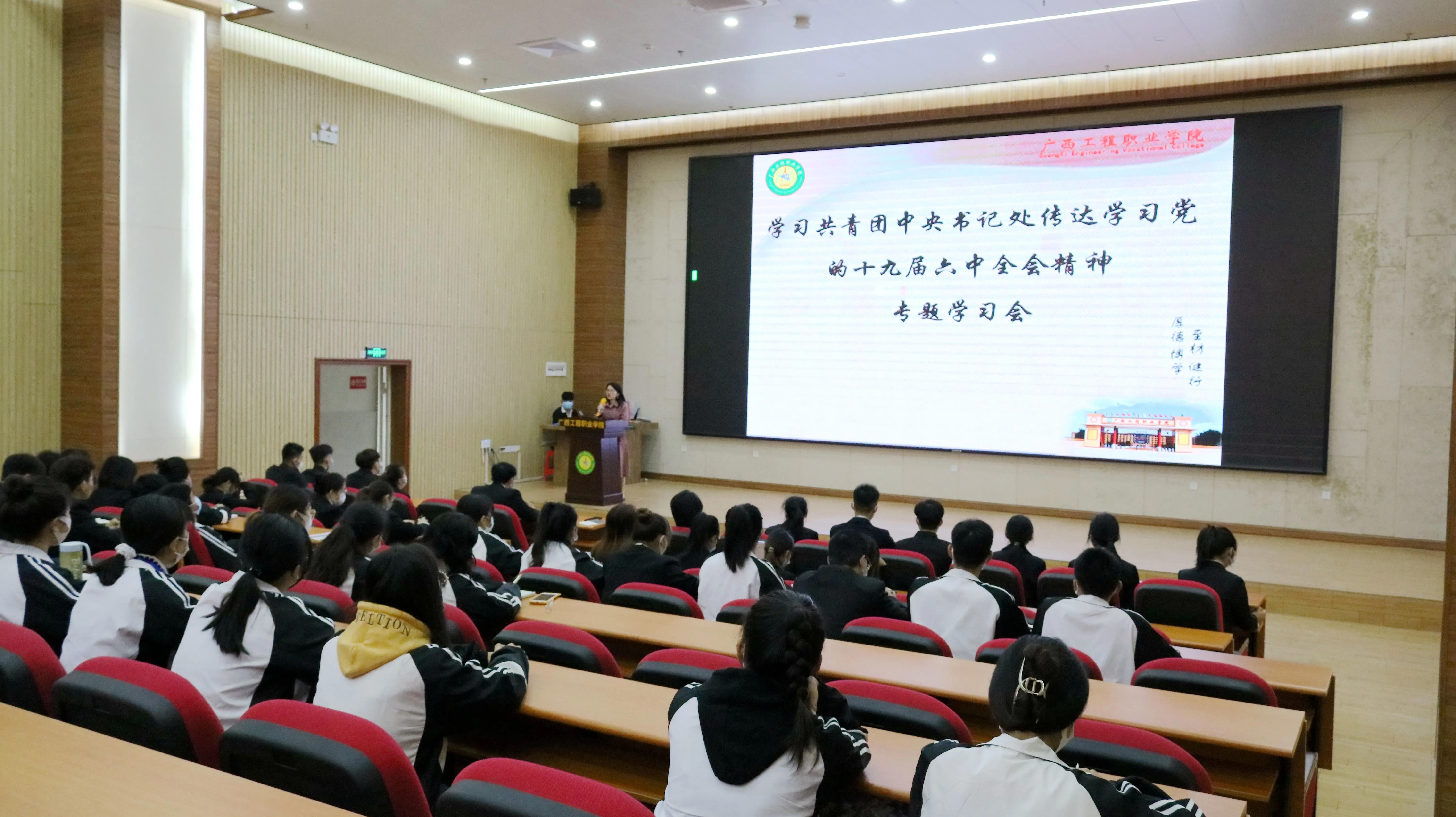 12月4日上午,學校共青團學習貫徹黨的十九屆六中全會精神專題會議在圖文信息大樓報告廳召開。學校校長助理黃秋霞出席并作專題輔導報告。學校全體團干及團員代表參加。