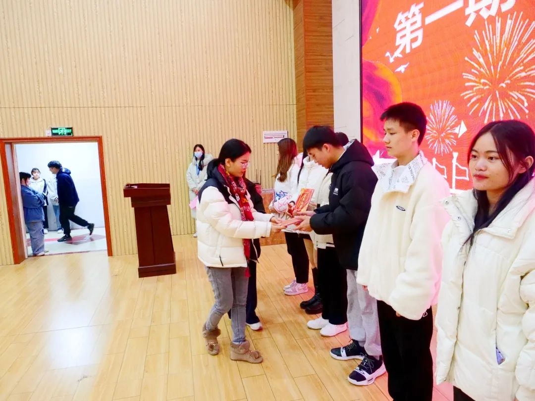 校長(zhǎng)助理黃秋霞給同學(xué)們頒獎(jiǎng)