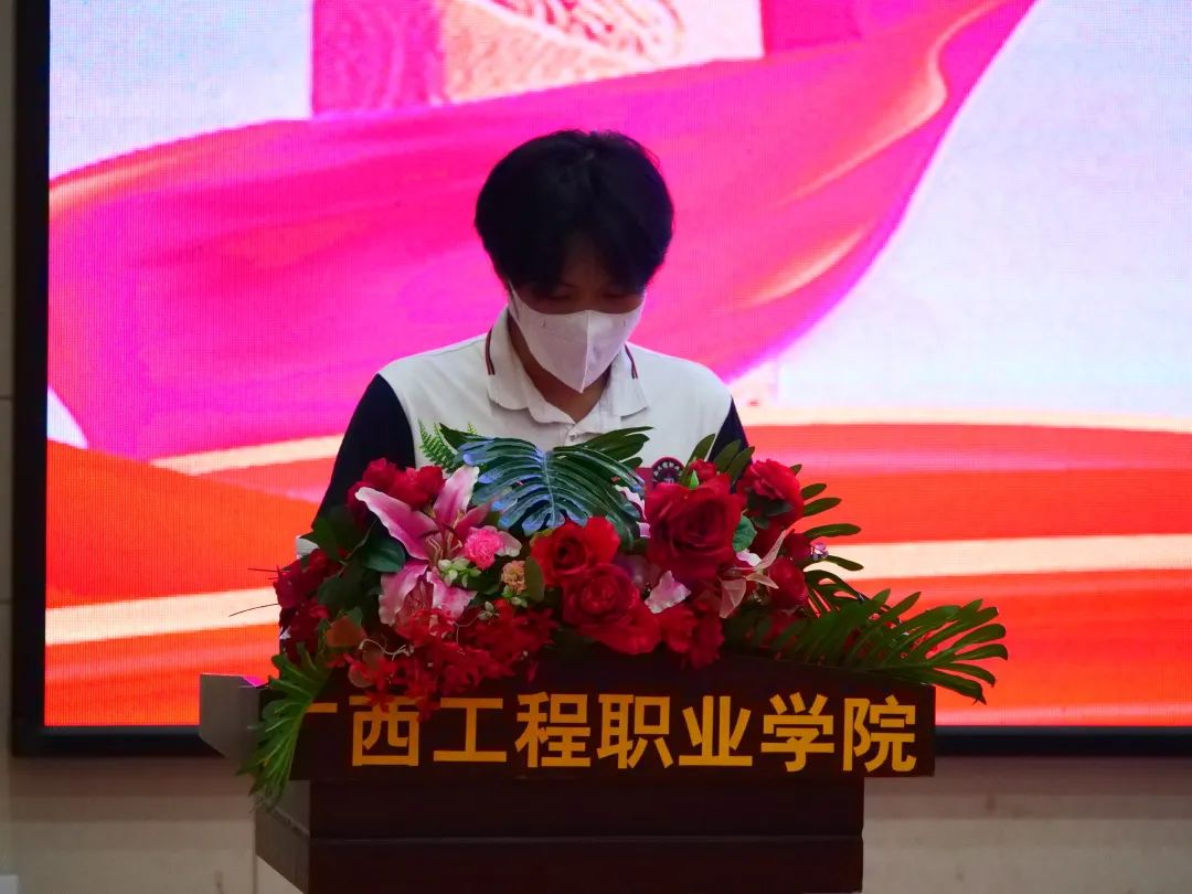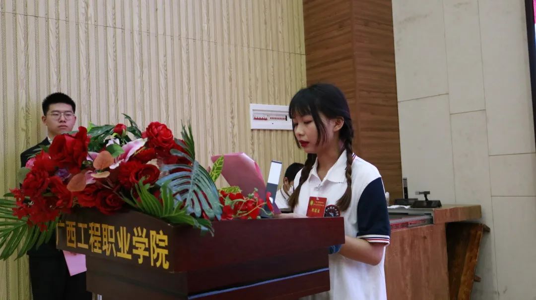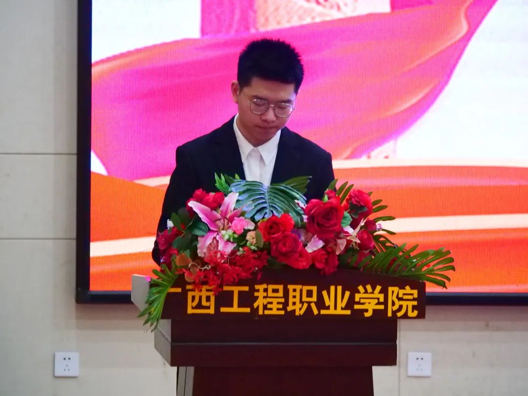 第十五屆學(xué)生會(huì)紀(jì)檢部部長(zhǎng)李茂澤宣讀《廣西工程職業(yè)學(xué)院學(xué)生會(huì)章程》