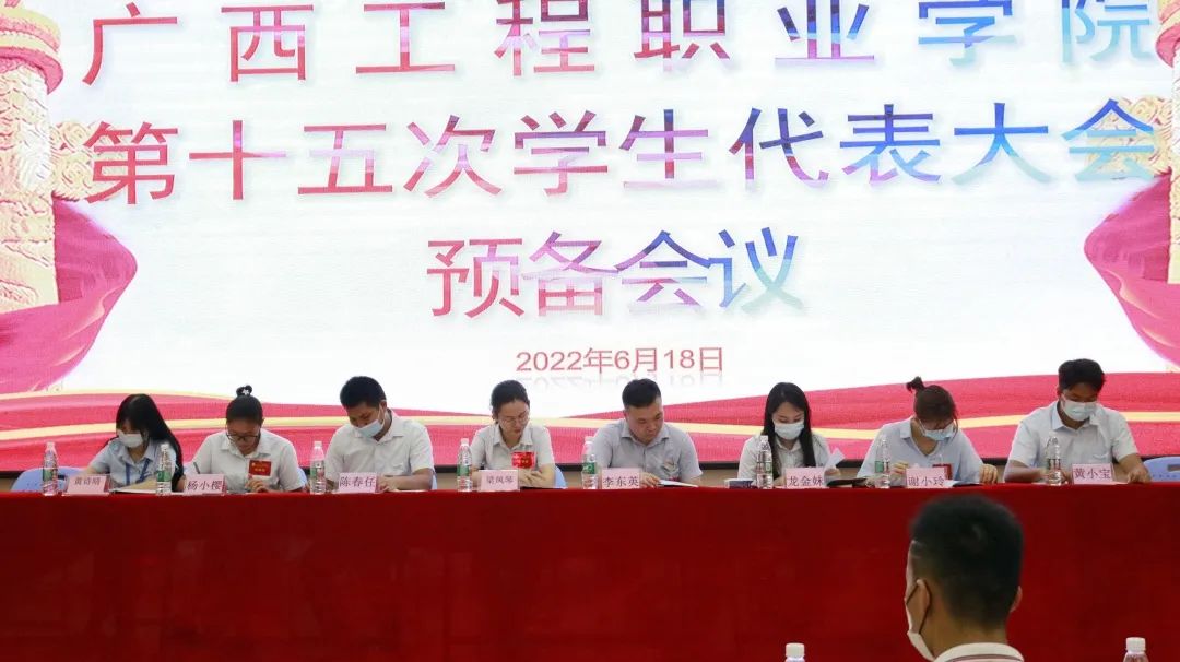 在第十五次學(xué)生代表大會(huì)預(yù)備會(huì)議上,代表們聽(tīng)取了《廣西工程職業(yè)學(xué)院第十五次學(xué)生代表大會(huì)籌備工作報(bào)告》、《廣西工程職業(yè)學(xué)院第十五次學(xué)生代表大會(huì)代表資格審查報(bào)告》、《廣西工程職業(yè)學(xué)院第十五次學(xué)生代表大會(huì)代表選舉辦法》,通過(guò)舉手表決的方式,審議通過(guò)了《廣西工程職業(yè)學(xué)院第十五次學(xué)生代表大會(huì)議程(正式會(huì)議)》、《廣西工程職業(yè)學(xué)院第十五次學(xué)生代表大會(huì)主席團(tuán)、執(zhí)行主席名單(草案)》和《廣西工程職業(yè)學(xué)院第十五次學(xué)生代表大會(huì)秘書(shū)長(zhǎng)、副秘書(shū)長(zhǎng)名單(草案)》。