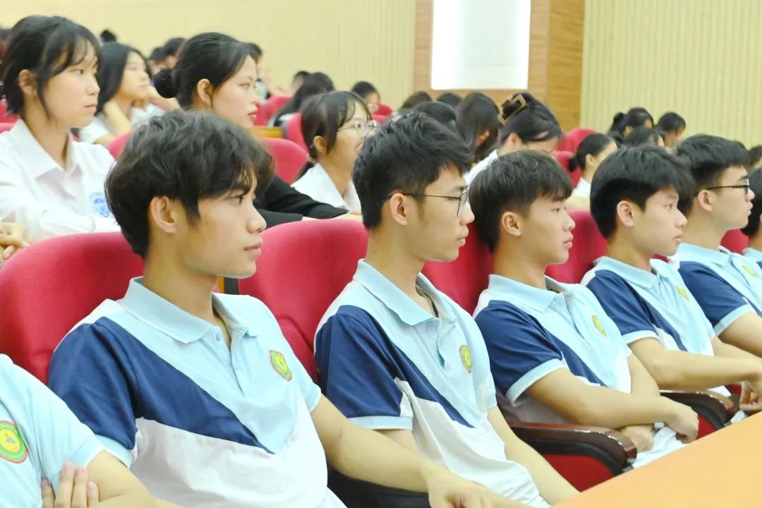 學(xué)校黨委副書記黃秋霞,黨委辦科長韋金松,校團(tuán)委副書記李麗清,各分團(tuán)委書記出席開班儀式,2023年“青馬班”全體學(xué)員參加開班儀式。