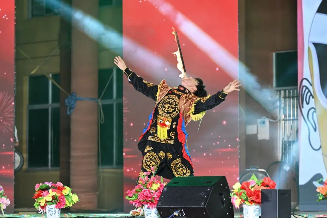 圖為川劇表演:川劇變臉、噴火等