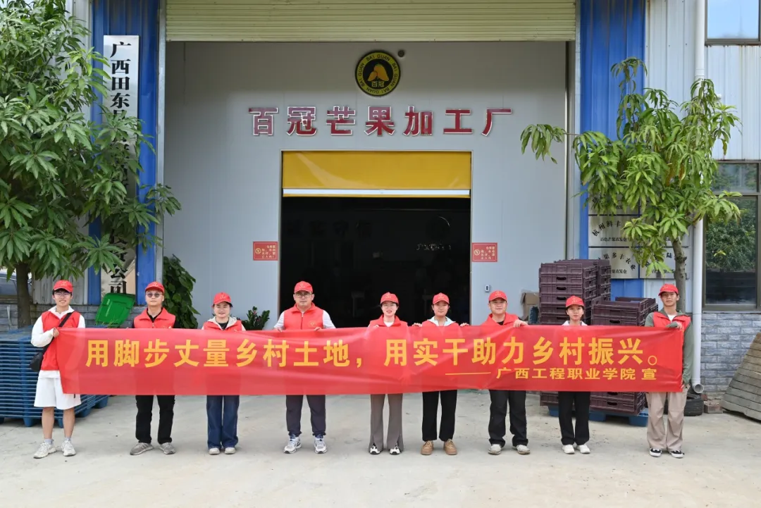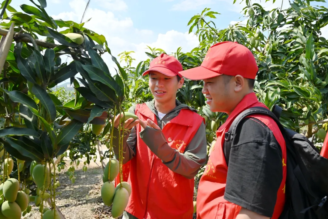 “青年先鋒隊,基層實踐行”服務團走進那朗芒果園、百冠芒果加工廠開展助力鄉(xiāng)村振興志愿服務活動,與果農(nóng)、工作人員了解田東縣芒果的種植、銷售、產(chǎn)業(yè)鏈等情況。