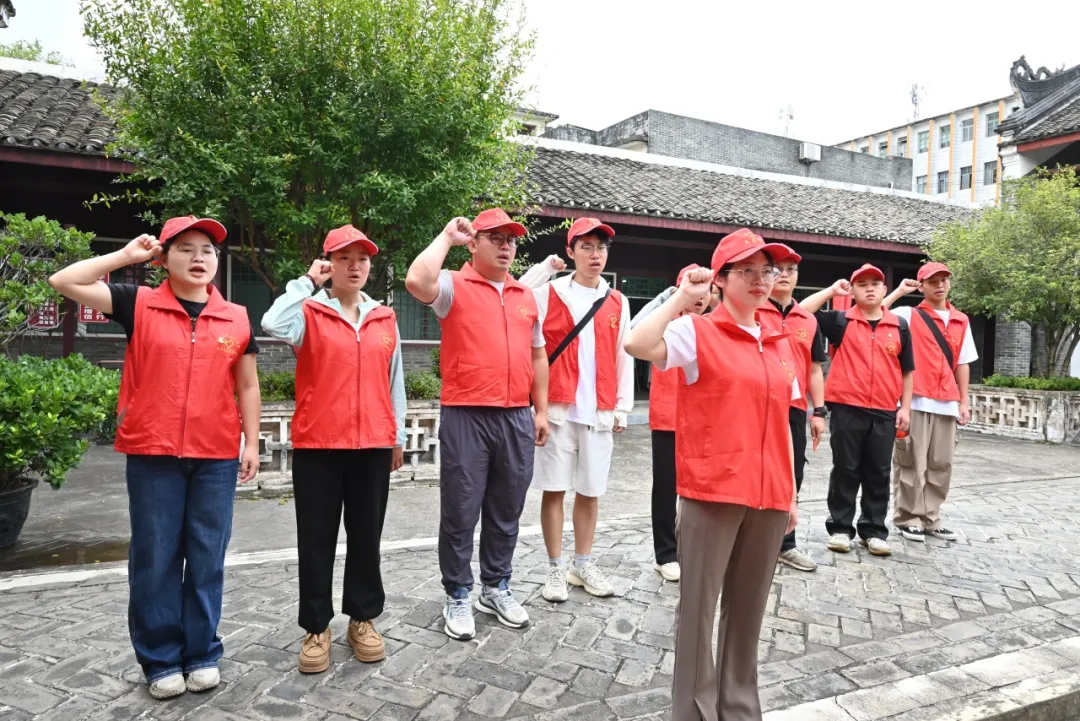 在參觀完紀念館后,黨委副書記黃秋霞帶領全體師生黨員在館內(nèi)重溫入黨誓詞。全體師生黨員以激昂的誓言,彰顯不負先輩遺志,不忘初心使命,踔厲奮發(fā)進取的堅定理想信念。