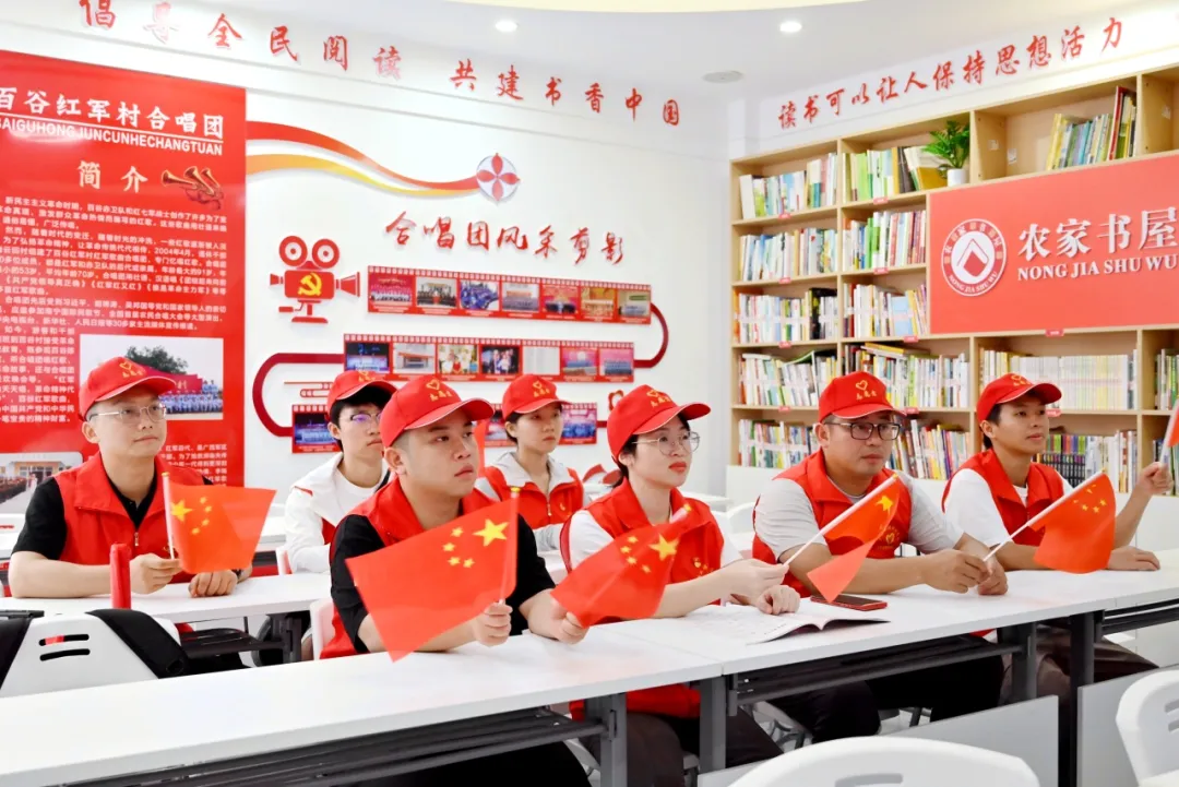 在百谷紅軍村,百谷紅軍村革命后代家屬帶領全體實踐團、服務團成員參觀了百谷紅軍村陳列室,她講解了百谷紅軍紅色革命故事。1929年12月,鄧小平、張云逸等無產(chǎn)階級革命家領導和發(fā)動了百色起義,建立紅七軍和右江蘇維埃政權,創(chuàng)建右江革命根據(jù)地。百谷村131人參加革命,其中50多人參加紅七軍和農(nóng)民協(xié)會,為鞏固和發(fā)展右江革命根據(jù)地的建設作出了積極貢獻。她將百谷村的歷史及百谷村發(fā)展現(xiàn)狀等向?qū)嵺`團、服務團成員進行了講解,并深入交流了鄉(xiāng)村的文化建設。此外,百谷紅軍村革命后代家屬還帶領了全體師生黨員齊唱了《紅軍紅又紅》《工農(nóng)革命要團結(jié)》《誰是革命主力軍》《共產(chǎn)黨領導真正確》等紅歌。