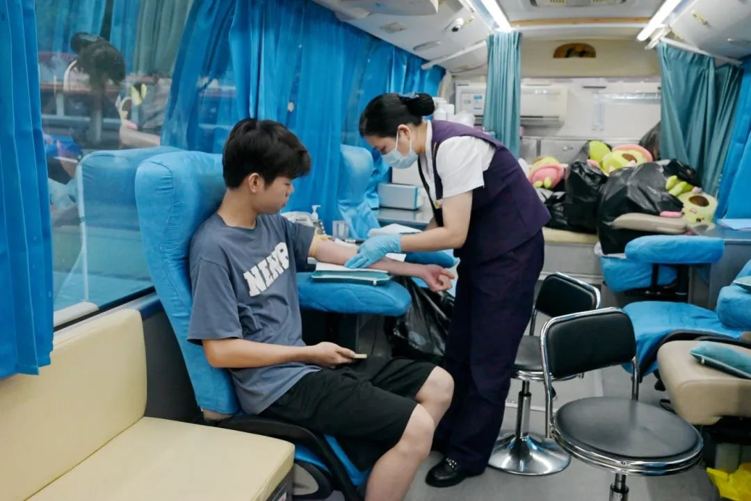 積極參與無償獻(xiàn)血活動(dòng)的同學(xué)們