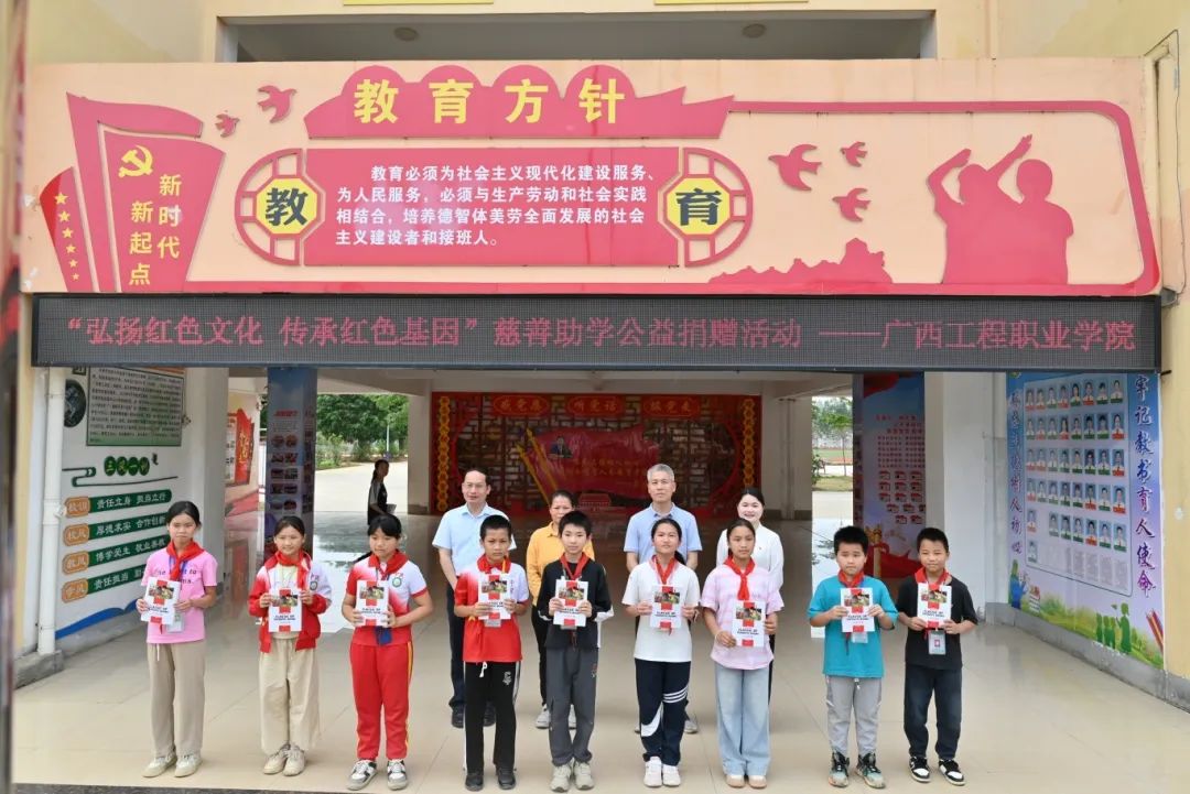 紅色精神照亮成長路,公益善舉溫暖學(xué)子心。此次捐贈活動不僅是一次愛心的傳遞,是一次精神的洗禮,更是對教育事業(yè)的支持。廣西工程職業(yè)學(xué)院以實(shí)際行動弘揚(yáng)了紅色革命精神,踐行了社會責(zé)任感和擔(dān)當(dāng),為地方教育事業(yè)注入了新的活力,激勵廣大青少年賡續(xù)紅色血脈,勤奮學(xué)習(xí),努力成長為擔(dān)當(dāng)民族復(fù)興大任的時代新人。