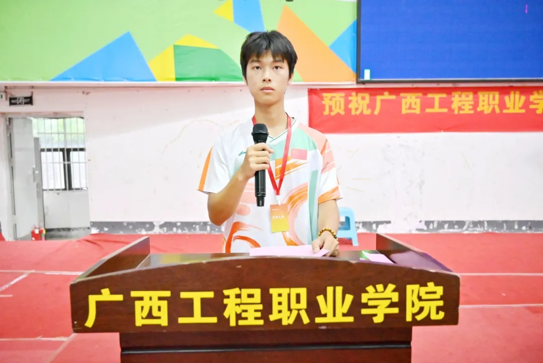 運(yùn)動(dòng)員代表余彬同學(xué)發(fā)言。他將秉持“友誼第一,比賽第二”的原則,全力以赴。他表示,全體運(yùn)動(dòng)員將以拼搏姿態(tài)書寫青春,用堅(jiān)韌意志挑戰(zhàn)極限,在賽場(chǎng)嚴(yán)守規(guī)則、尊重裁判對(duì)手,既賽出競(jìng)技水平,更賽出體育道德。無(wú)論勝負(fù),都將在切磋中收獲成長(zhǎng)與快樂(lè),以精湛球技呈現(xiàn)精彩對(duì)決,共享羽毛球運(yùn)動(dòng)魅力,用汗水為體育精神添彩!