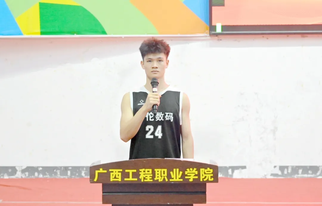 土木工程學院2023級工程造價4班陸振華同學代表獲獎運動員發(fā)言,他在發(fā)言中衷心感謝學校舉辦“五四杯”籃球大賽,為同學們搭建了展示自我、揮灑汗水的優(yōu)質平臺。賽場上,隊員們的每一次奔跑、投籃,都凝結著拼搏的力量,也讓大家深刻體會到團結一心、永不言敗、奮發(fā)向前的體育精神。他希望此次比賽能激發(fā)更多同學對籃球的熱愛,鼓勵大家積極投身體育運動,在感受籃球魅力的同時促進身心健康。他也向并肩作戰(zhàn)的隊友、公正執(zhí)裁的裁判和默默付出的工作人員致謝,祝愿學?;@球氛圍日益濃厚,未來賽事更精彩。