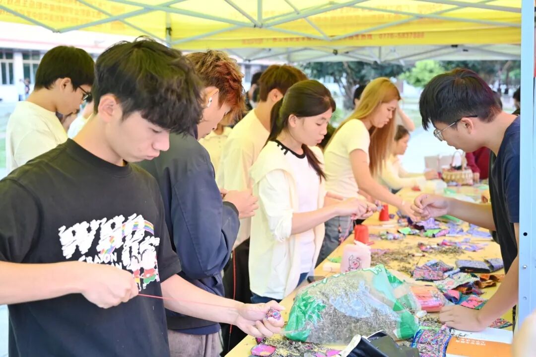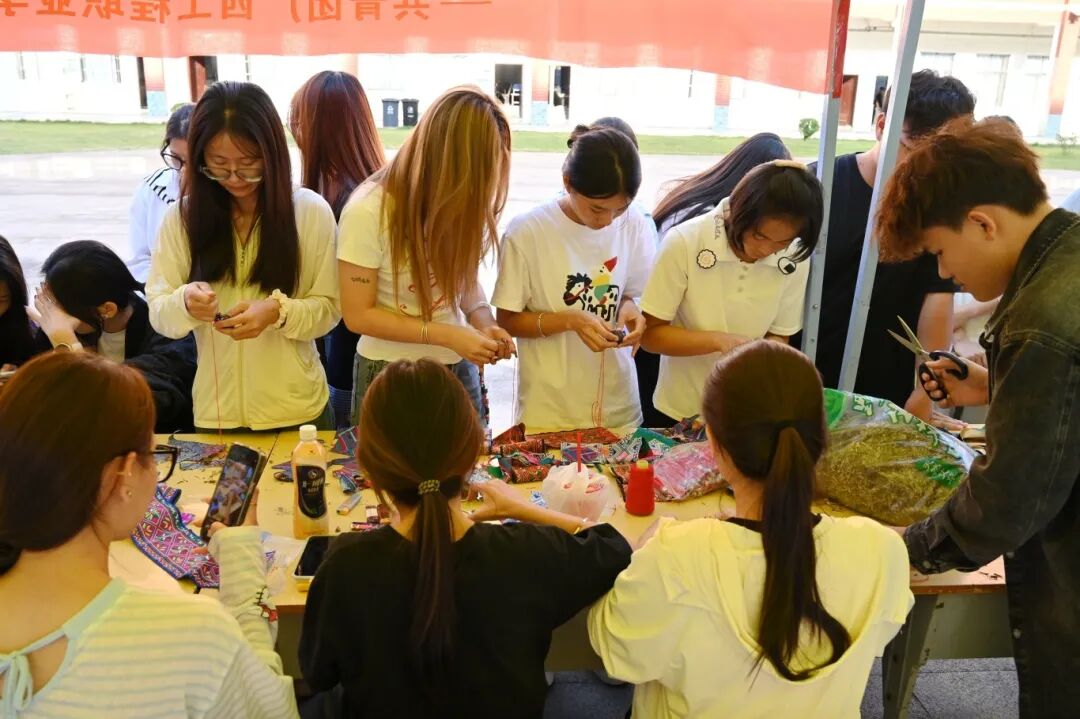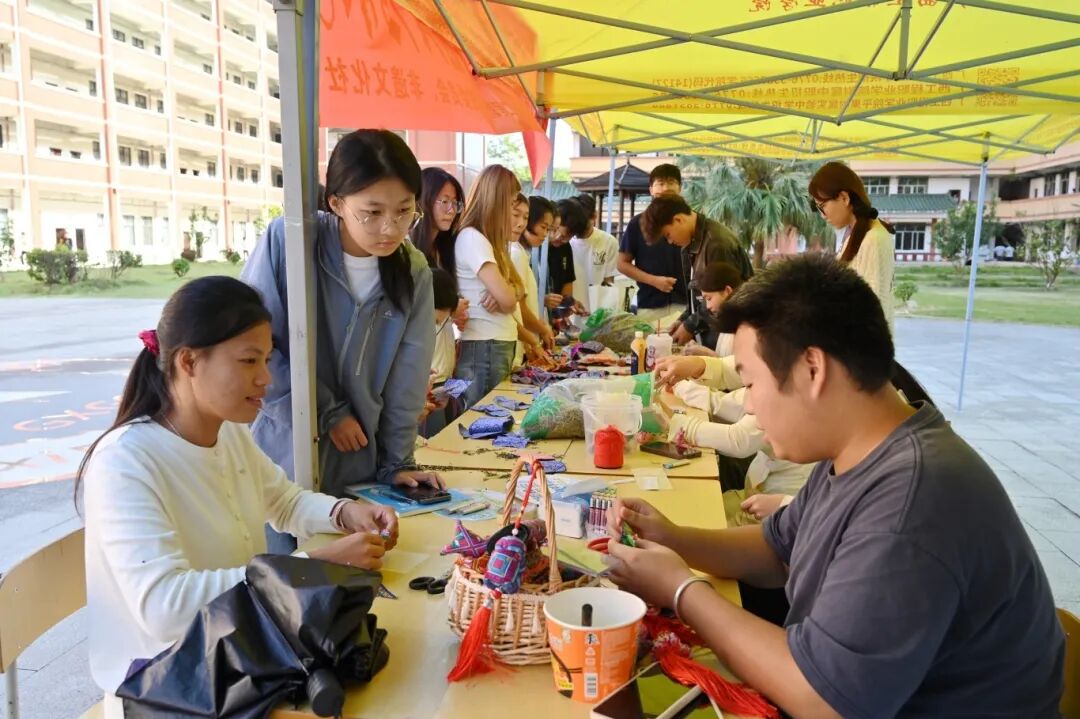 活動現(xiàn)場格外熱鬧,展示區(qū)前擠滿了熱情的同學(xué),大家完全沉浸在活動里,有的互相交流創(chuàng)作技巧,有的舉著剛完成的作品拍照,指尖的動作與熱烈的氛圍交織,讓整個(gè)現(xiàn)場都滿是節(jié)日的活力與傳統(tǒng)文化的溫度。