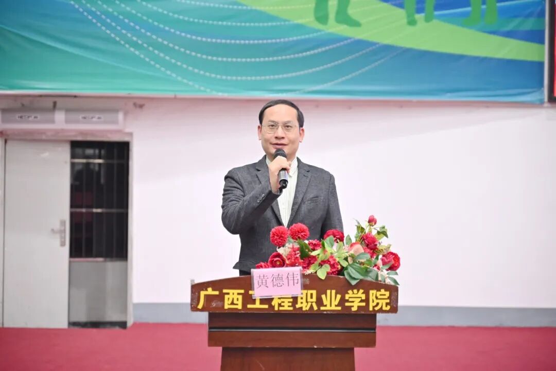 學校副校長黃德偉講話,他首先向?qū)I(yè)嚴謹?shù)牟门袉T、記錄員及籌備工作組老師們致以誠摯感謝,是你們筑牢了賽事公平有序的基石;向所有奮勇拼搏的參賽隊伍表示熱烈祝賀,賽場上的奔跑、配合與突破,盡顯青春風采。