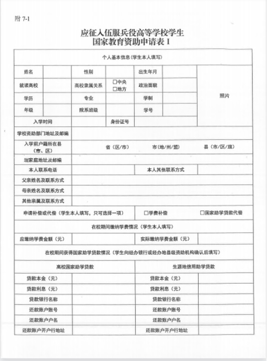 1.應(yīng)征入伍服兵役高等學(xué)校學(xué)生國(guó)家教育資助申請(qǐng)表Ⅰ
