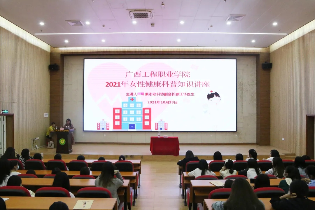 為了增強(qiáng)女大學(xué)生的自我健康保護(hù)意識(shí)及疾病防治意識(shí),2021年10月28日—29日晚,我校邀請(qǐng)平果市老科協(xié)副會(huì)長(zhǎng)滕江華醫(yī)生在學(xué)校圖文信息大樓報(bào)告廳開展了兩場(chǎng)女性健康科普知識(shí)專題講座,各二級(jí)學(xué)院大一、大二女生代表分別參加了講座。