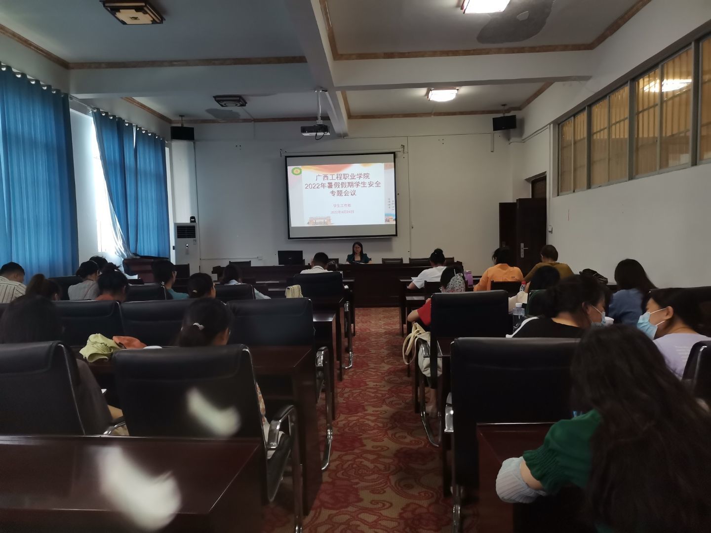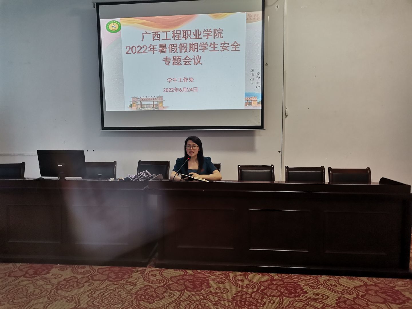 為增強學生暑假安全意識,安排好暑假的相關(guān)事宜。6月24日,學生工作處在圖書館一樓學術(shù)報告廳召開2022年暑假假期學生安全工作專題會議。學校黨委副書記黃秋霞、學生工作處副處長李麗詩、各二級學院負責人、學生科長、輔導(dǎo)員參加本次會議。
