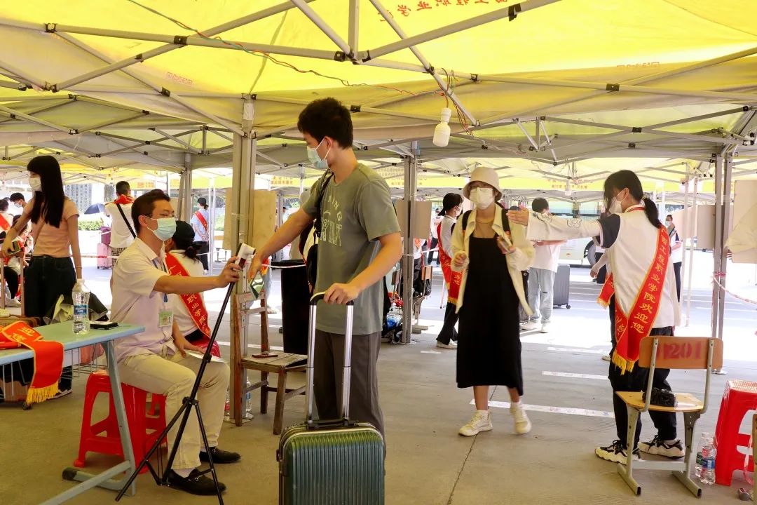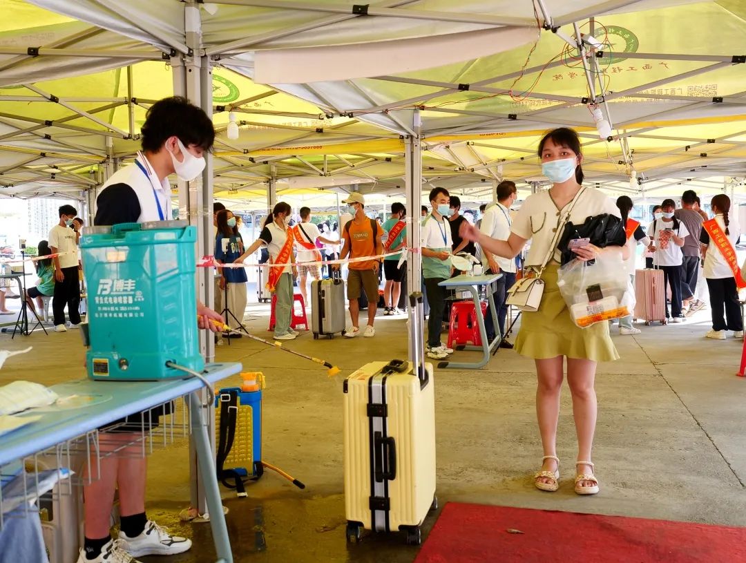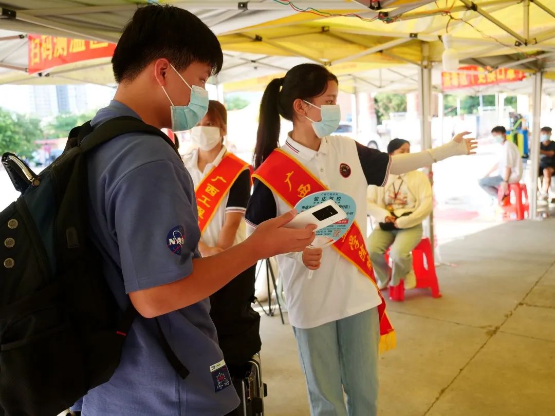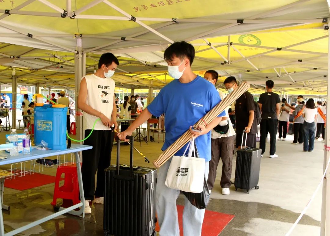 迎新期間,學校設置了校外、校內迎新點和安全報到通道,要求全程佩戴口罩、測量體溫、查驗“雙碼”、48小時內核酸檢測陰性證明及一鍵直報等,通過安全通道后進入校園。入校后,學校實施嚴格的“三天兩檢”制度,切實維護疫情防控下校園的穩(wěn)定和學生安全,為新生們筑起了堅固又溫暖的抗疫防線。