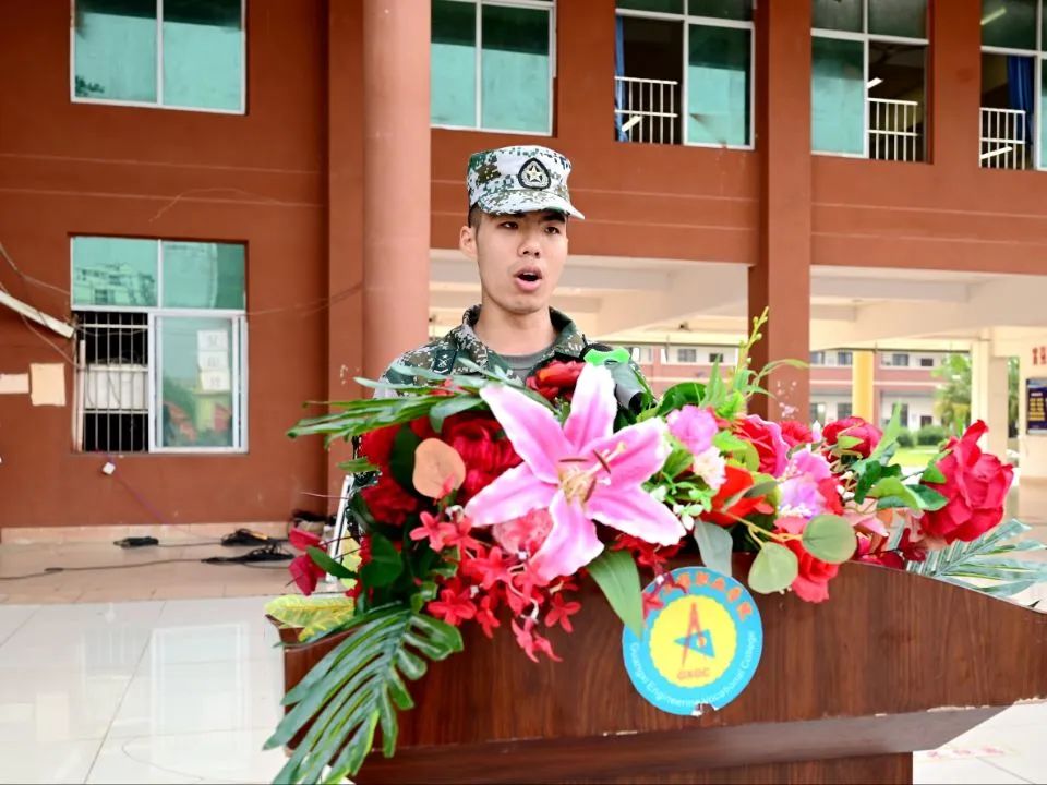 新生代表2022級(jí)藝術(shù)設(shè)計(jì)學(xué)院蔣明翰同學(xué)發(fā)言,表示全體新生要以軍人的身份,刻苦訓(xùn)練,嚴(yán)守紀(jì)律,聽(tīng)從指揮,服從命令,磨煉意志,不怕困難,尊敬老師,尊敬教官,爭(zhēng)做優(yōu)秀學(xué)員。以飽滿(mǎn)的熱情、堅(jiān)強(qiáng)的毅力去迎接軍訓(xùn)中的各種挑戰(zhàn),讓青春在軍訓(xùn)中綻放得更加奪目燦爛!
