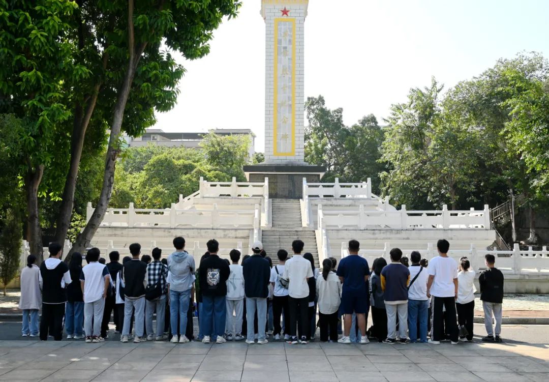 平果市烈士陵園綠樹環(huán)繞,豐碑聳立,莊嚴肅穆。全體學員面向革命烈士紀念碑肅立默哀,致敬英烈。