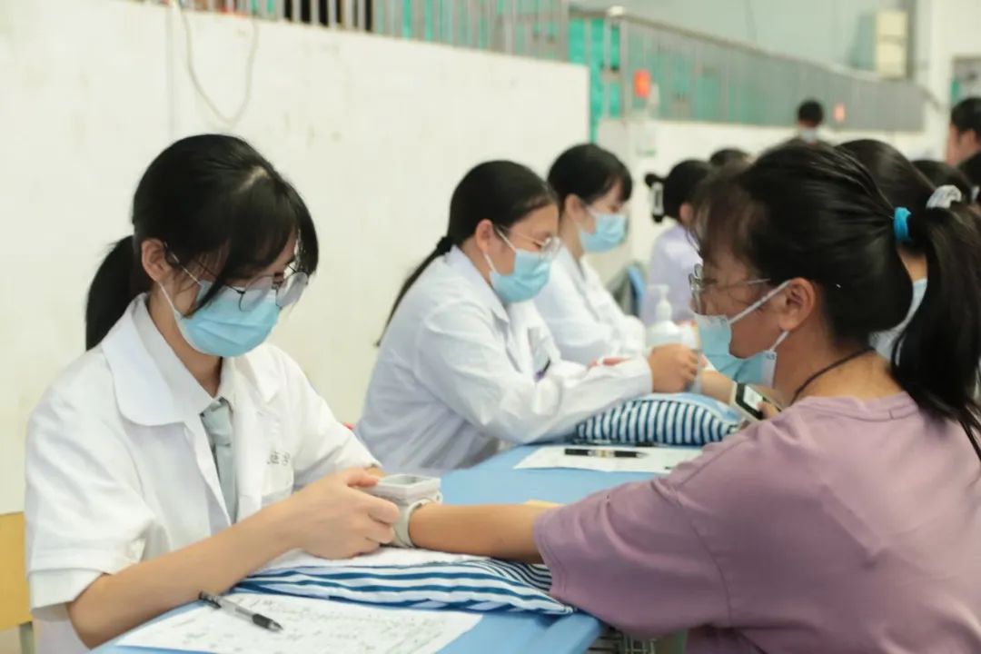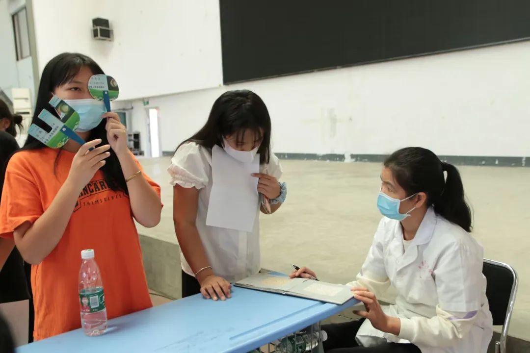 為了預(yù)防學(xué)生發(fā)生暈倒等的突發(fā)情況,我校同時在體檢區(qū)設(shè)置了休息點,提供葡萄糖水為學(xué)生補(bǔ)充能量。