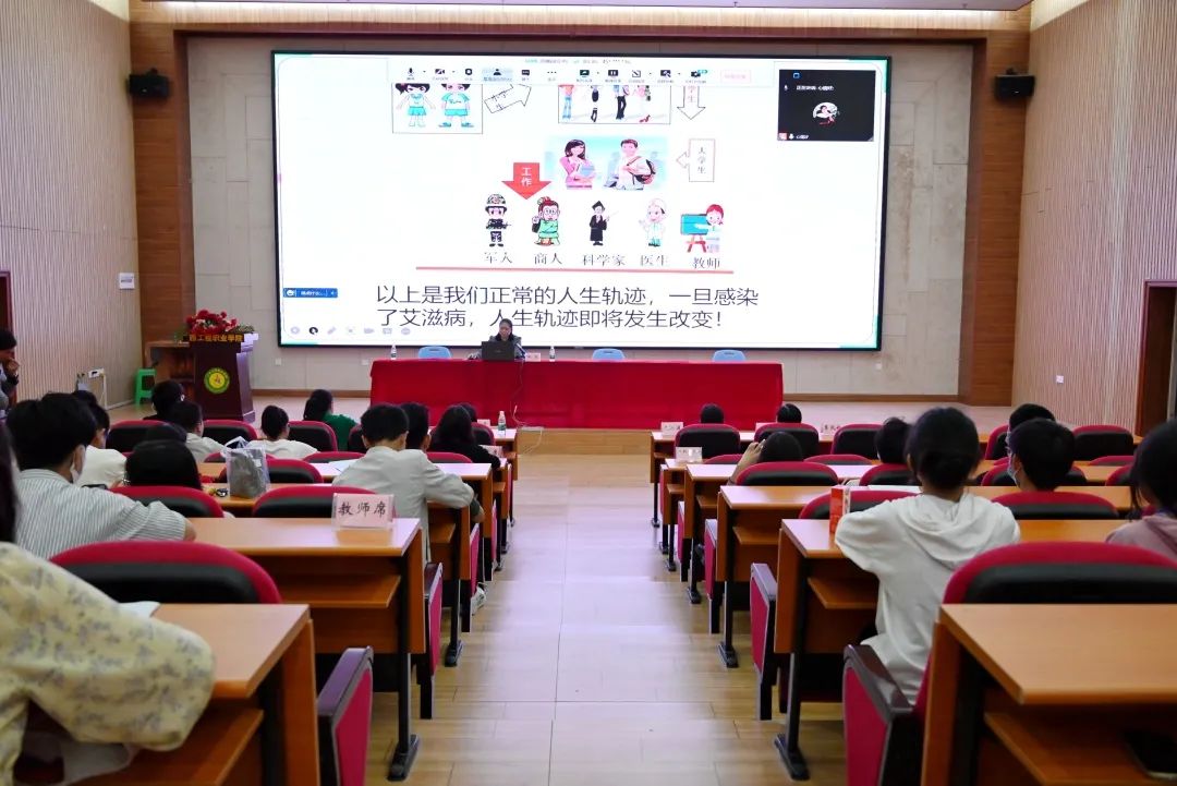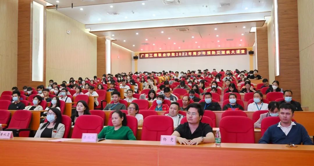 凝聚力量預(yù)防艾滋,用心關(guān)愛(ài)生命健康。為進(jìn)一步做好預(yù)防艾滋病教育工作,傳播預(yù)防艾滋病知識(shí),提高同學(xué)們的自我保護(hù)意識(shí)和能力。11月9日晚,廣西工程職業(yè)學(xué)院邀請(qǐng)平果市疾病預(yù)防控制中心防艾科方燕飛科長(zhǎng)在學(xué)校圖文信息大樓一樓學(xué)術(shù)報(bào)告廳開(kāi)展防艾健康講座。學(xué)校黨委副書(shū)記黃秋霞,各二級(jí)學(xué)院院長(zhǎng)、黨支部副書(shū)記、學(xué)生科長(zhǎng)、輔導(dǎo)員,各二級(jí)學(xué)院學(xué)生代表及保安、宿管員、綠化保潔員代表到現(xiàn)場(chǎng)聆聽(tīng)講座。其余師生員工通過(guò)騰訊會(huì)議線上觀看講座直播。學(xué)生工作處陳國(guó)昇老師主持講座。