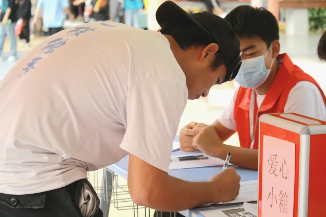 捐贈現(xiàn)場,同學(xué)們在志愿者的引導(dǎo)下有序登記信息、捐獻物資等,為貧困地區(qū)孩子和家庭帶去溫暖和愛心。