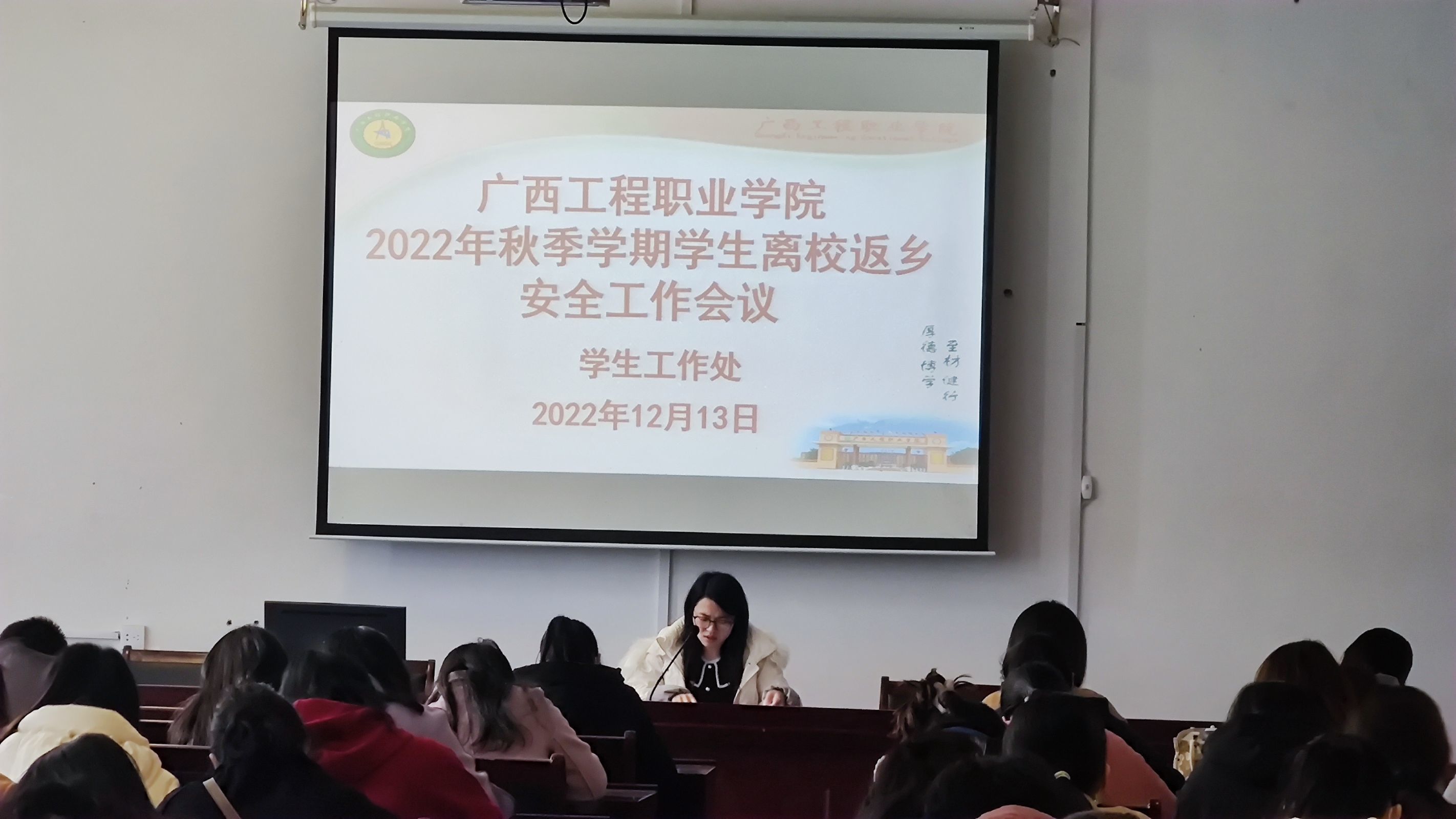 12月13日,我校在圖書館一樓學術報告廳召開2022年秋季學期學生離校返鄉(xiāng)安全工作會議,學校黨委副書記黃秋霞、二級學院院長、科長、副書記、輔導員參加會議。
