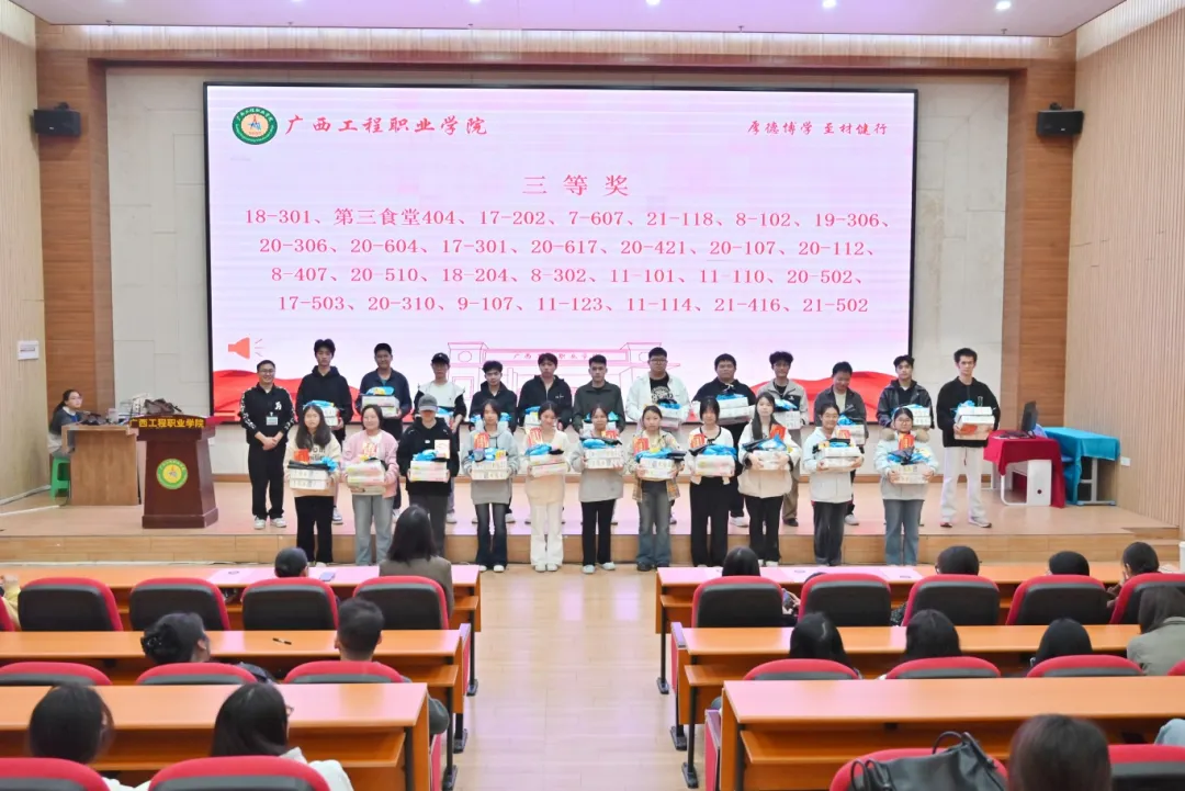 為營(yíng)造溫馨向上的宿舍氛圍,幫助2025級(jí)新生融入宿舍集體生活,廣西工程職業(yè)學(xué)院舉行第一屆以“搭建心靈之家,共創(chuàng)和諧宿舍”為主題的新生宿舍文化評(píng)比活動(dòng)?;顒?dòng)于2025年10月20日啟動(dòng),由學(xué)生工作處承辦。評(píng)比活動(dòng)歷時(shí)一個(gè)多月,經(jīng)過院級(jí)初賽、校級(jí)決賽,最終評(píng)選出一等獎(jiǎng)10個(gè)宿舍、二等獎(jiǎng)21個(gè)宿舍、三等獎(jiǎng)28個(gè)宿舍。頒獎(jiǎng)儀式于2025年12月3日在圖文信息大樓一樓報(bào)告廳舉行。