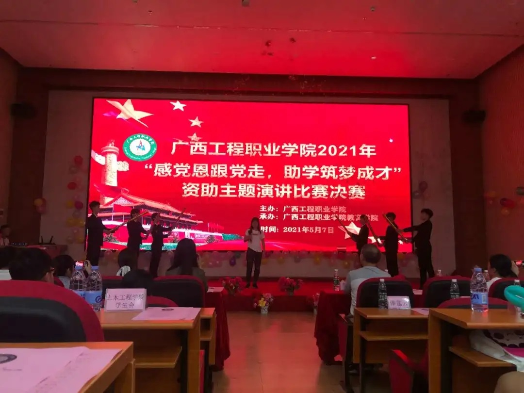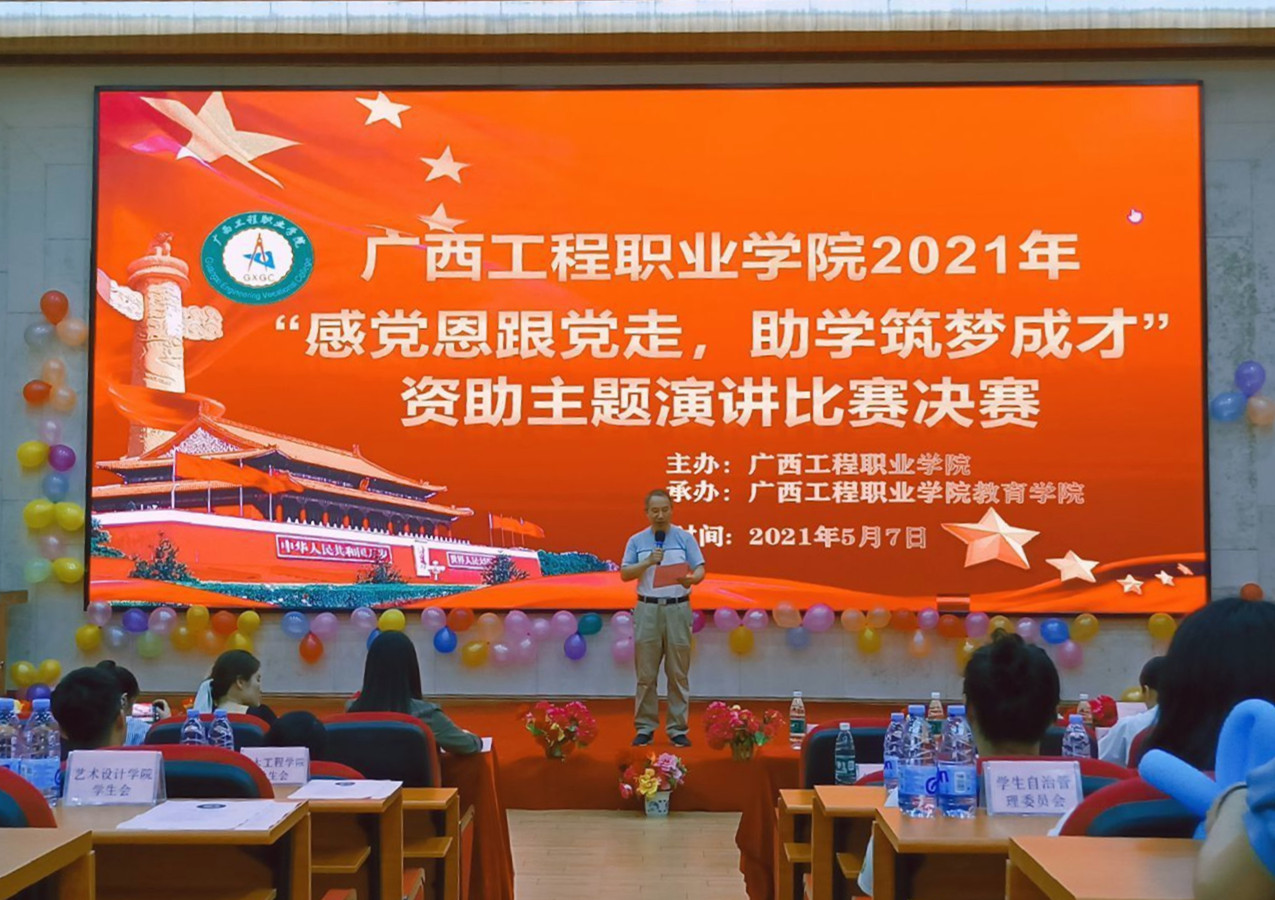 為了進(jìn)一步推進(jìn)我校學(xué)生資助政策宣傳工作,培育受助學(xué)生的愛黨愛國情感和感恩意識,2021年5月7日,由我校主辦,我校教育學(xué)院承辦的廣西工程職業(yè)學(xué)院2021年“感黨恩跟黨走,助學(xué)筑夢成才”演講比賽決賽于我校于圖文信息大樓一樓學(xué)術(shù)報告廳舉行。學(xué)校黨委副書記、副校長胡細(xì)木、副校長林萌、教育學(xué)院副院長梁善雅及各學(xué)院師生代表到場觀看了本次比賽。