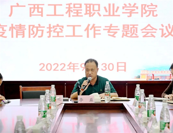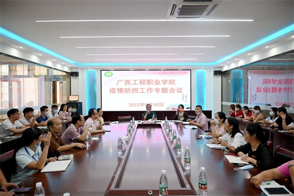 2022年9月30日,廣西工程職業(yè)學(xué)院召開(kāi)國(guó)慶節(jié)前疫情防控與安全穩(wěn)定工作會(huì),傳達(dá)自治區(qū)、百色市及屬地關(guān)于國(guó)慶節(jié)前疫情防控和安全穩(wěn)定有關(guān)會(huì)議和文件精神,部署學(xué)校國(guó)慶期間疫情防控和安全穩(wěn)定有關(guān)工作。會(huì)議由李益董事長(zhǎng)主持,黨委副書(shū)記黃秋霞,副校長(zhǎng)羅妮、吳先夏、黃德偉,校長(zhǎng)助理蔣茂麗,校屬各單位負(fù)責(zé)人及科長(zhǎng)參加了會(huì)議。