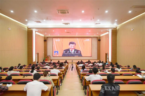 學(xué)校線下集中觀看的主要會(huì)場(chǎng)分別在圖文信息大樓報(bào)告廳、圖書館學(xué)術(shù)報(bào)告廳以及各個(gè)二級(jí)學(xué)院會(huì)議室。學(xué)校黨委副書記黃秋霞,紀(jì)委書記、副校長(zhǎng)彭高彬,副校長(zhǎng)羅艷妮、黃德偉,校長(zhǎng)助理蔣茂麗等校領(lǐng)導(dǎo)與師生代表一起觀看了大會(huì)直播。未能到場(chǎng)的師生也紛紛通過(guò)廣播、電視、網(wǎng)絡(luò)等收聽(tīng)收看會(huì)議盛況。