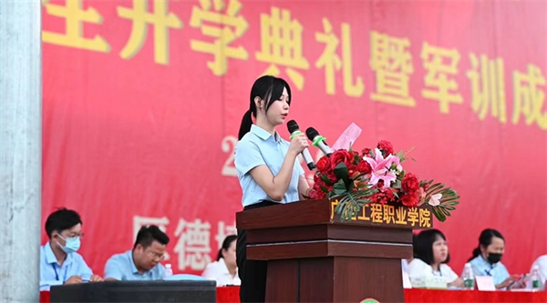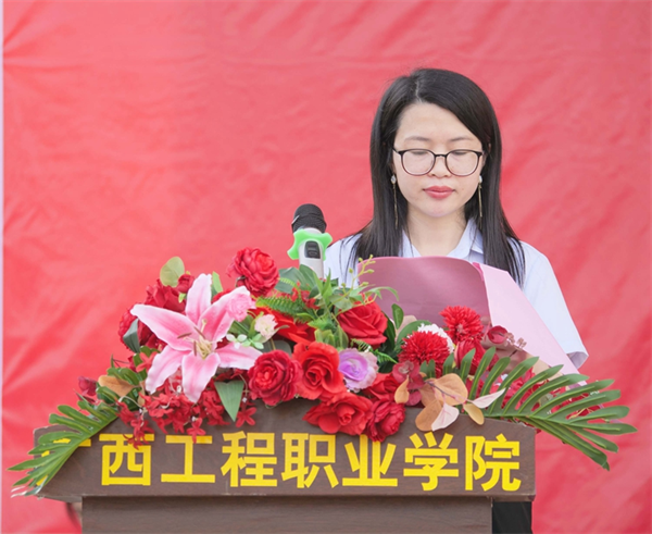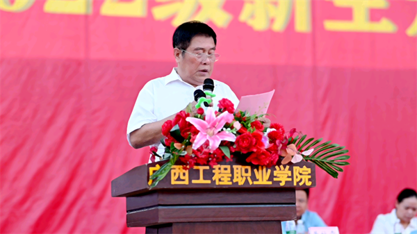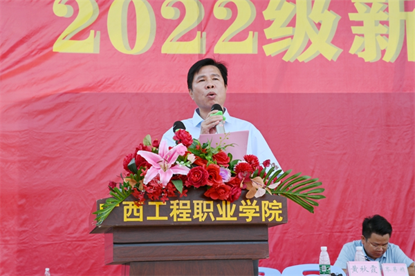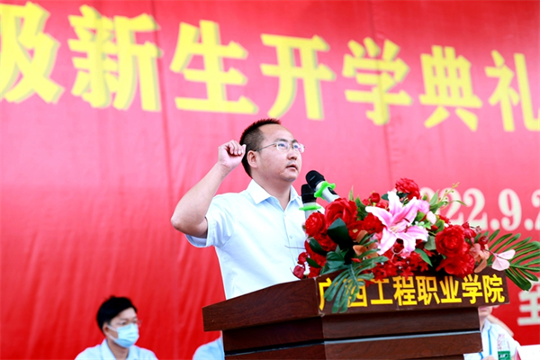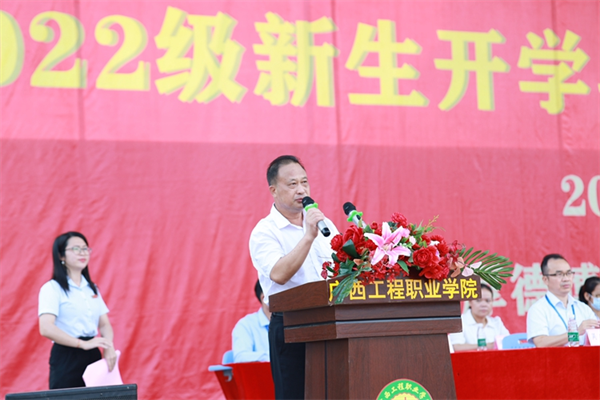 紀(jì)委書記、副校長彭高彬帶領(lǐng)全體新生進(jìn)行入學(xué)宣誓。全體新生以青春之名,宣誓表決心:我是廣西工程職業(yè)學(xué)院的學(xué)生,我將胸懷祖國,遵紀(jì)守法,嚴(yán)守校紀(jì)校規(guī),尊師愛校,勤奮好學(xué),團(tuán)結(jié)友愛;明德修身,誠以待人,毅以處事;謹(jǐn)記“厚德博學(xué),至材健行”校訓(xùn),弘揚(yáng)“熔煉工匠精神,鑄就一流技藝”的學(xué)校精神,緊跟時(shí)代步伐,勇?lián)鷼v史使命,立志成才,報(bào)效祖國。他們以鏗鏘有力的誓言奏響新時(shí)代青年的自強(qiáng)不息、學(xué)習(xí)向未來的最強(qiáng)音。