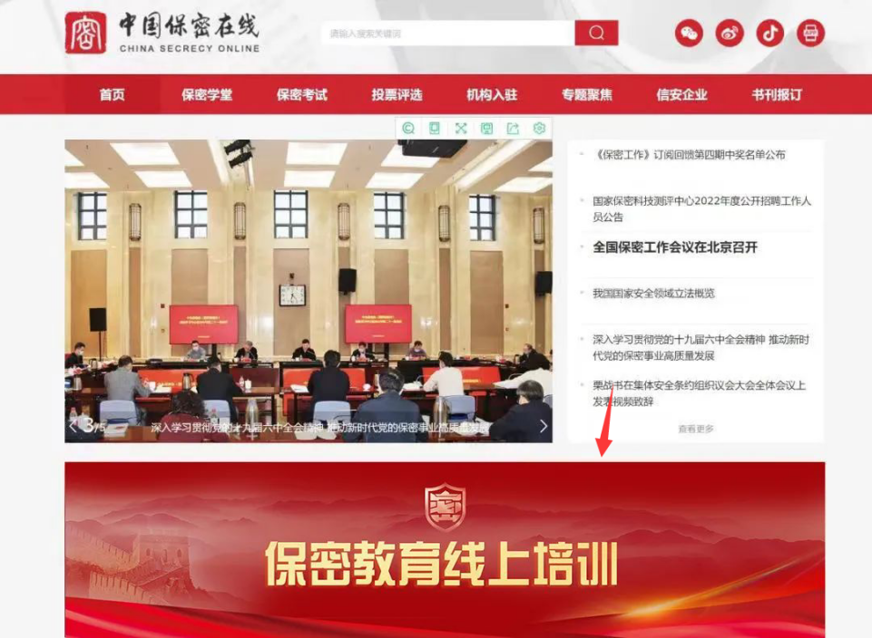 (2)通過中國保密在線網(wǎng)站進(jìn)入培訓(xùn)系統(tǒng):點(diǎn)擊首頁標(biāo)題圖進(jìn)入即可。
