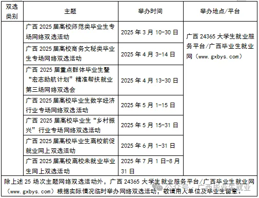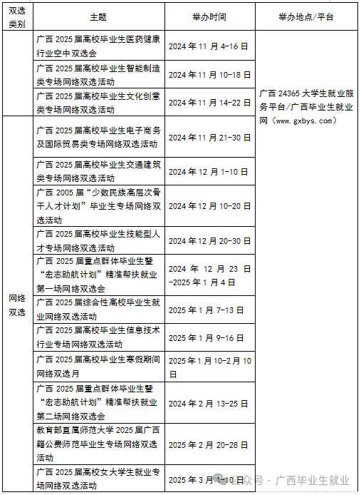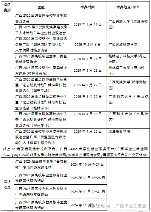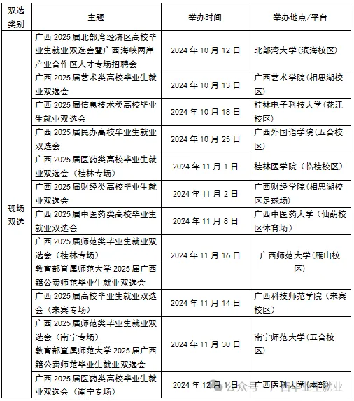 廣西2025屆普通高校畢業(yè)生就業(yè)雙選會安排表