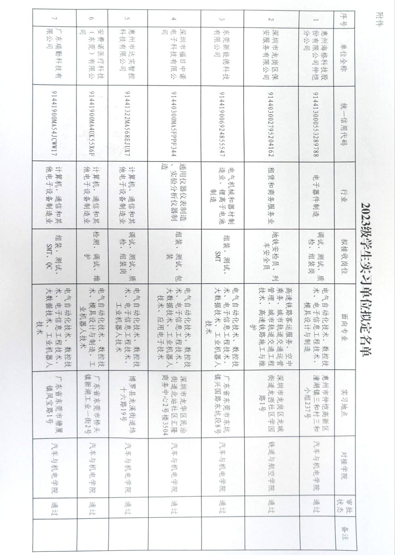 根據(jù)學(xué)校實習(xí)工作安排及《廣西工程職業(yè)學(xué)院學(xué)生實習(xí)管理辦法》相關(guān)規(guī)定,我校2023級學(xué)生實習(xí)單位名單已經(jīng)學(xué)校實習(xí)工作領(lǐng)導(dǎo)小組審核,并報經(jīng)校級黨組織會議審議通過,現(xiàn)予以正式公布。
