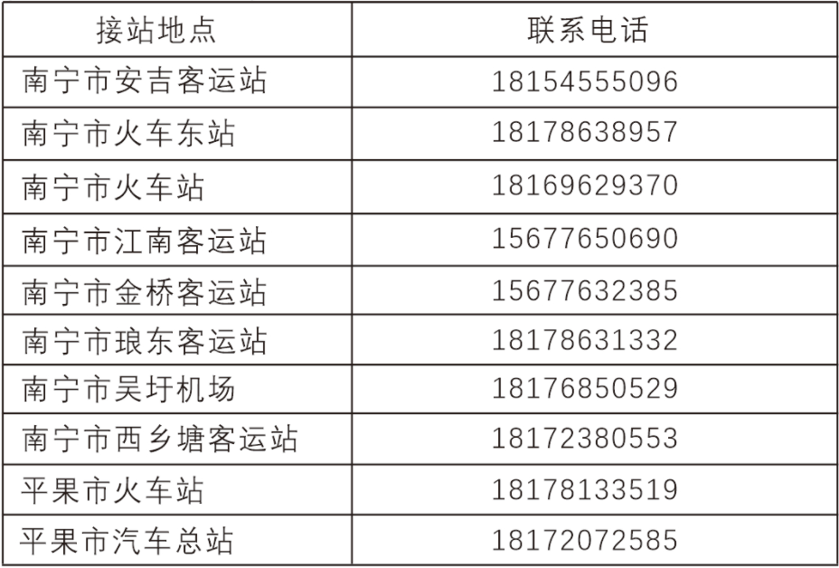 2.廣西區(qū)內(nèi)各市縣均有動車、快巴直達平果站。如需在南寧轉車,可按下列方式到達: