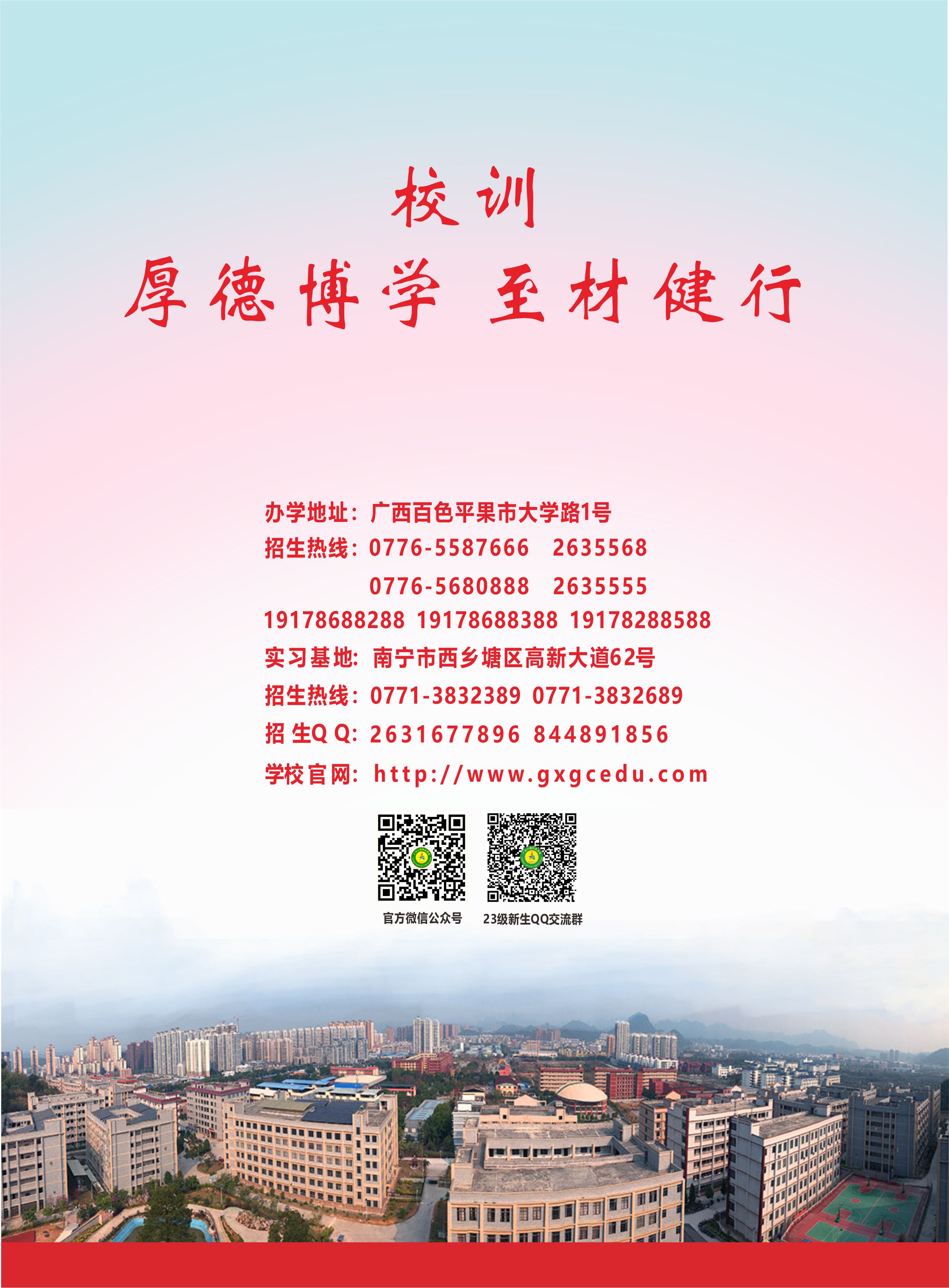 學(xué)校地址:廣西平果市大學(xué)城大學(xué)路1號 電話:0776-5680888 郵編:531499